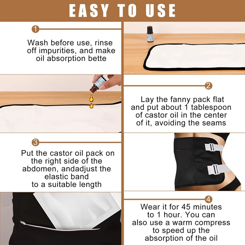 Easy to Use: Apply castor oil to the desired area, place the pack over it, and secure it with the adjustable straps and magic adhesive. Relax and let the pack work its magic, delivering the therapeutic benefits of castor oil directly to your skin.
