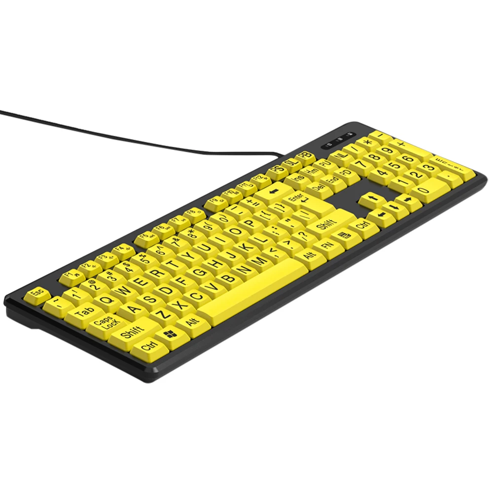 Enhance accessibility and ease of use with the VisionEase Large Print Wired Keyboard, specifically designed for seniors and individuals with low vision. Featuring large, high-contrast keys with yellow buttons against a black background, this keyboard ensures optimal visibility and reduced eyestrain. It’s perfect for those who require clearer and more distinct key markings to navigate computer tasks comfortably.